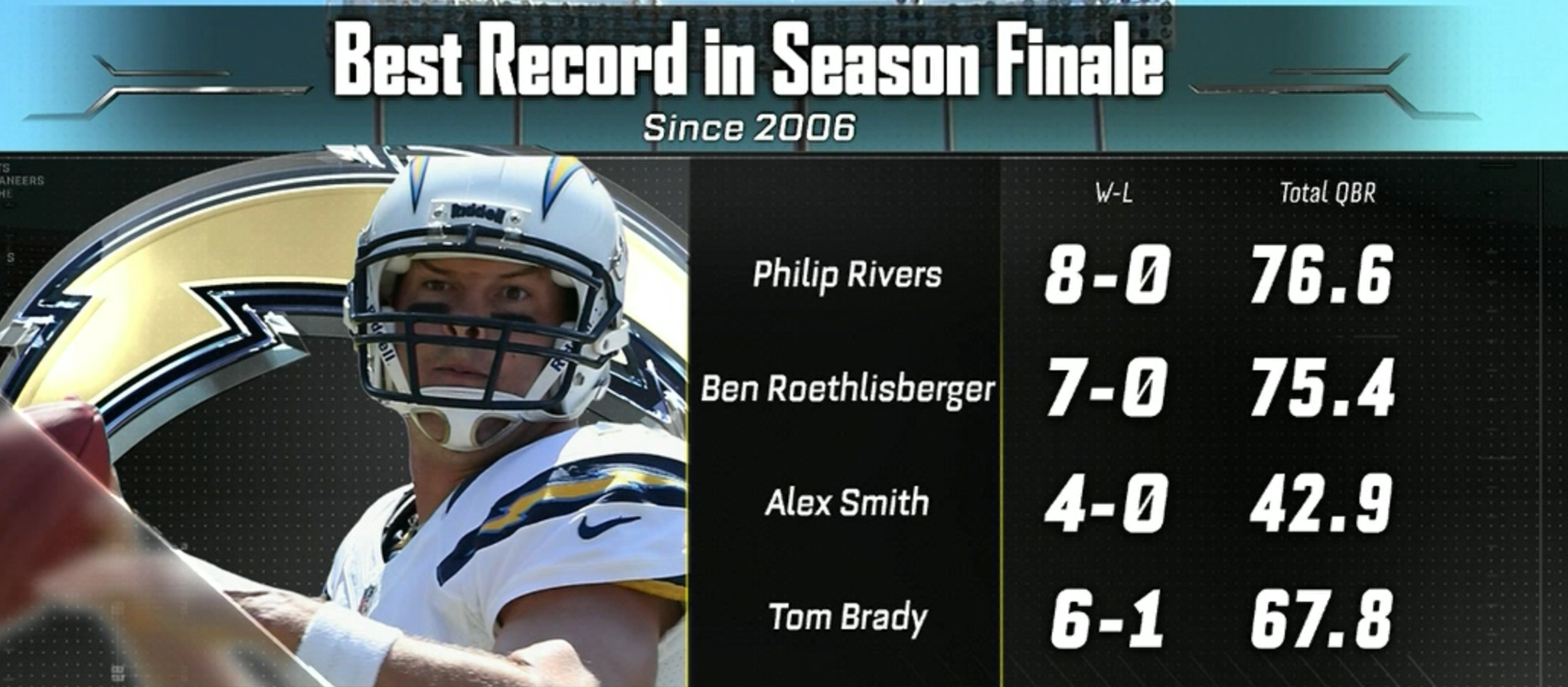 This is Rivers’ 5th game in a row with a passer rating over 120.0… that’s something no QB in the NFL has ever done. #MakingHistory #SDvsOAK